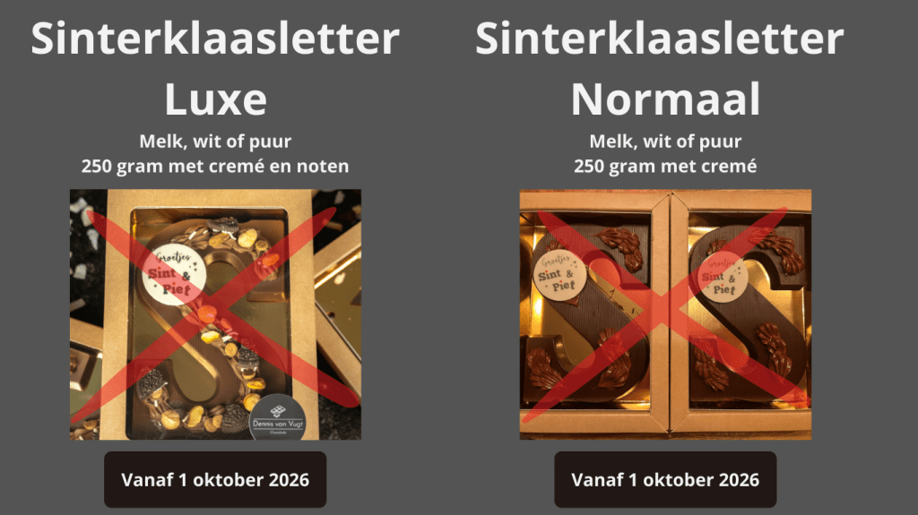 De seizoensproducten zijn niet het hele jaar te verkrijgen, wat ervoor zorgt dat ze een speciaal karakter hebben en een bepaalde unieke charme uitstralen. Hieronder zie je gemakkelijk wat op dit moment te bestellen is of juist op een later moment gaat komen, zodat je altijd op de hoogte bent van de nieuwste aanbiedingen en trends. Dit maakt het mogelijk om je aankopen te plannen en te genieten van de versheid en kwaliteit van de seizoensgebonden producten. Houd er rekening mee dat sommige artikelen snel uitverkocht kunnen zijn, dus het is verstandig om snel te handelen en niet te wachten tot het laatste moment om te bestellen. De sinterklaasletters zijn alweer te bestellen, in melk, wit of puur, beschikbaar in een luxe of normale variant. Dit is ook een prachtig product voor bedrijven; voor aantallen vanaf 50 stuks kun je naar de prijs vragen.
